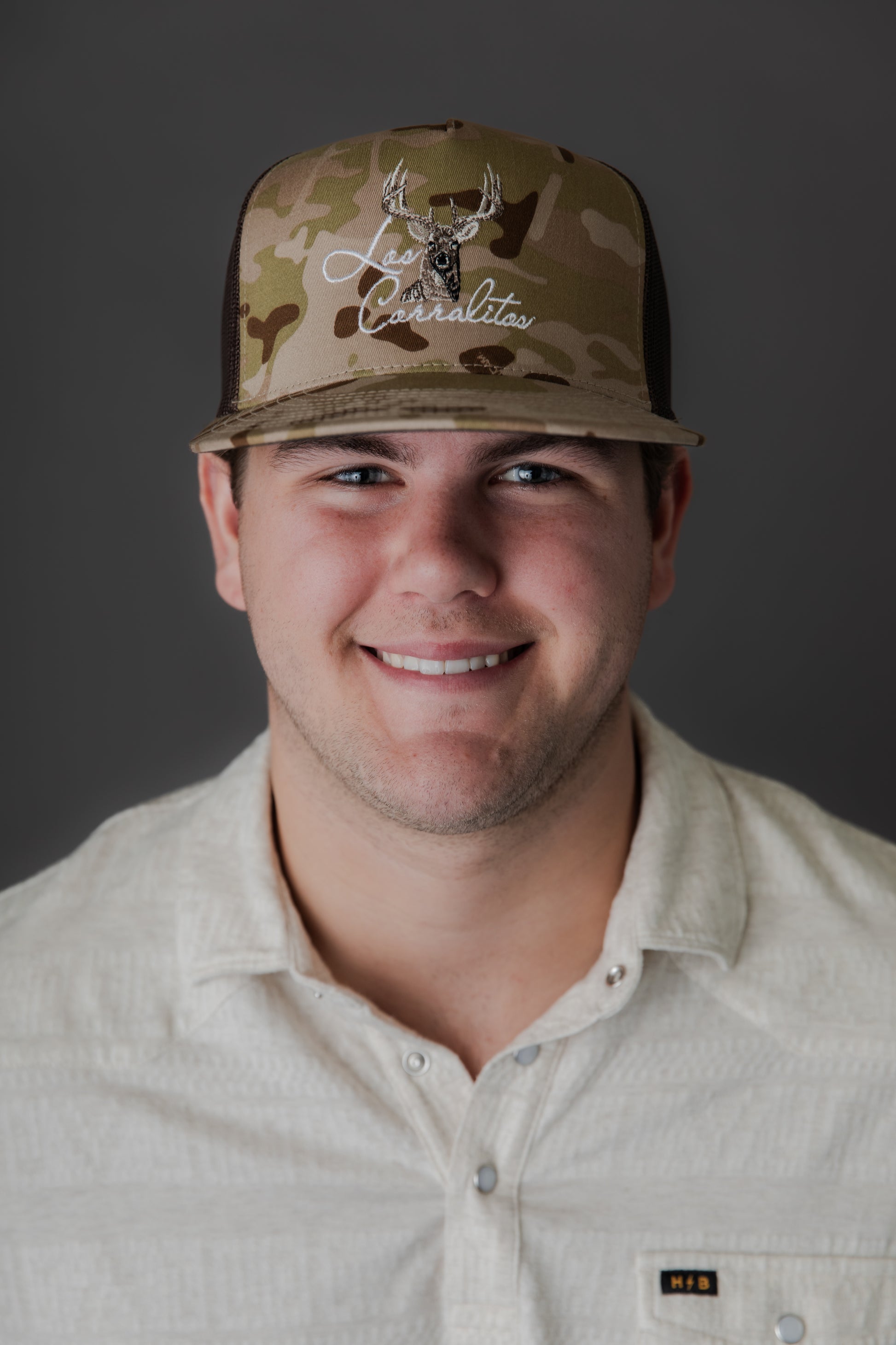 This cap is inspired by a dream buck of my mother's. A buck that was "coming to horns" while my mom was rattling on the banks of the Rio Grande river on our ranch in South Texas, "Los Corralitos". You will not see this buck on any other items because this is her buck that's why this cap is so special. And of course carries the brand.